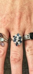 Vintage Sterling Silver Ring with Oval Blue Glass Cabochon