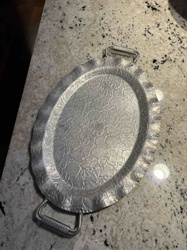 Vintage Hammered Aluminum Floral Serving Tray