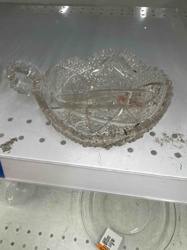 Pressed Glass Divided Nappy with Single Handle