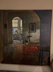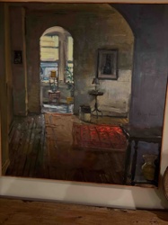 Mid-Century Impressionist Genre Painting - Woman in a Red Shawl