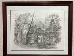 Framed Architectural Pencil Sketch of Rothenburg ob der Tauber
