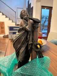 Neoclassical Bronze Sculpture of a Female Allegorical Figure Leaning on an Ionic Column