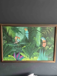 Tropical Rainforest Painting with Macaws