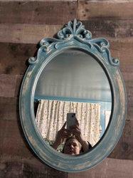 Vintage-Style Oval Wall Mirror with Distressed Teal Finish