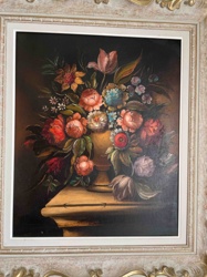 Framed Still Life Floral Oil Painting in the Dutch Masters Style