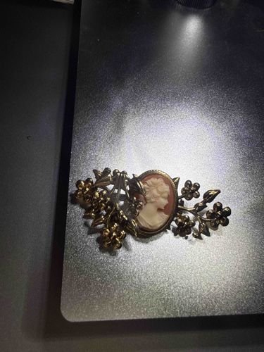 Victorian-Style Floral Shell Cameo Brooch