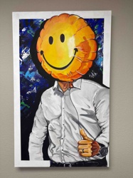 Contemporary Surrealist Portrait with Smiley Face Balloon