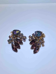 Vintage Purple & AB Rhinestone Clip-On Earrings
