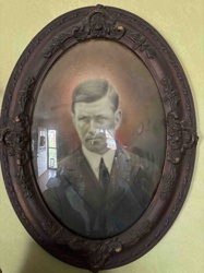 Early 20th Century Convex Glass Crayon Enlargement Portrait