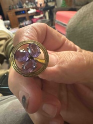 Vintage Amethyst and Gold-Tone Three-Stone Brooch or Ring