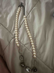 Mixed-Media Asymmetrical Costume Pearl and Rhinestone Statement Necklace