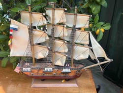 Vintage Three-Masted Square-Rigged Wooden Ship Model