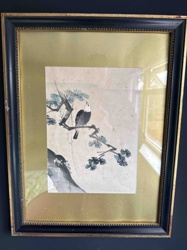 Japanese Ukiyo-e Woodblock Print of a Bird on a Flowering Branch
