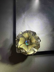 Vintage Ribbon Swirl Flower Brooch with Aurora Borealis Rhinestone