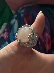Cocktail Ring with Large Pink Quartz and Textured Silver Setting