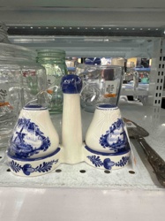 Vintage Delft Blue Style Salt and Pepper Shaker Set with Holder
