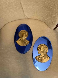 Sacred Heart of Jesus and Immaculate Heart of Mary Cobalt Blue Mirrored Wall Plaques