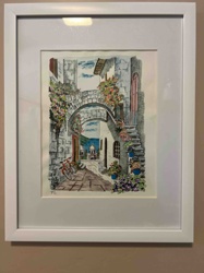 Mediterranean Street Scene Watercolor and Ink Illustration