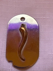 Vintage Enameled Metal Dog Tag Pendant with Italian Horn (Corne)
