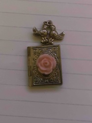 Vintage Silver-Tone Book Locket Charm with Lovebirds and Pink Resin Rose