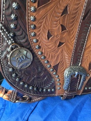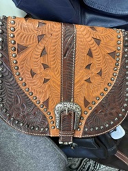 Tooled Leather Western Saddle Bag Purse