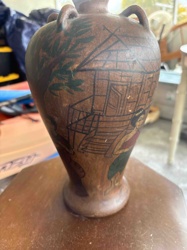 Hand-Painted Southeast Asian Terracotta Ovoid Vase