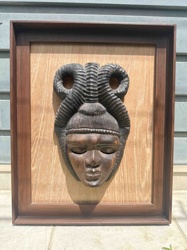Framed African-style Hand-Carved Wooden Mask