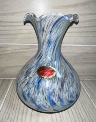 Ruffled Rim Hand-Blown Spatter Glass Vase