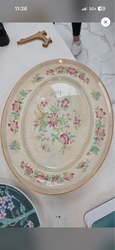 Cobalt Blue Scalloped Porcelain Cabinet Plate with Rose Transfer