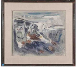 Mid-Century Abstract Nautical Gouache or Mixed Media Painting
