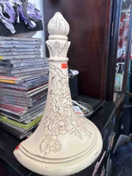 Distressed White Floral Decorative Lamp Base or Finial Sculpture