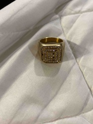 Gold-Tone Octagonal Pave Men's Signet Ring