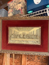 Gilt Metal Bas-Relief Plaque of 'The Last Supper' in Red Velvet Matting