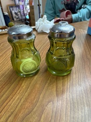 Vintage Tiara Exclusives Sandwich Pattern Eagle Medallion Salt and Pepper Shakers