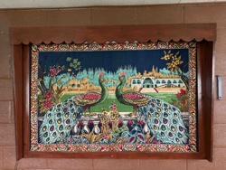 Vintage Loom-Woven Peacock Wall Tapestry in Custom Wooden Shadow Box