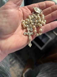 Vintage Crucifix Rosary with Faux Pearl Beads