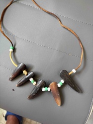 Bovine Horn and Glass Bead Necklace on Leather Cord
