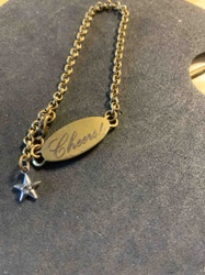 Vintage-Style 'Cheers!' Script Engraved Charm Bracelet