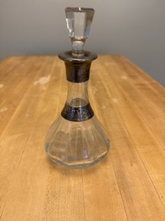 Art Deco Sterling Silver Mounted Glass Decanter with Hammered Band