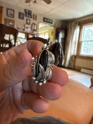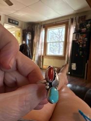 Vintage Native American Turquoise and Coral Sterling Silver Leaf Ring
