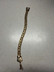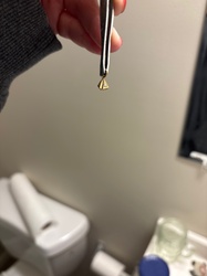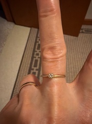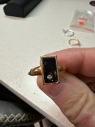 This item is a petite, three-dimensional pyramid-shaped charm or pendant, likely measuring under 10mm in height. Constructed from yellow gold (appearing to be 10k or 14k based on the warm hue), it features a geometric design with a faceted surface. On at least one visible face, a small circular white gemstone, most likely a round-cut diamond, is bead-set within a triangular indentation. The construction includes a small integrated gold jump ring at the apex, which is currently held by metal tweezers, suggesting its use as a charm for a bracelet or a delicate necklace pendant. The surfaces show a high-polish finish with soft rounded edges, indicating moderate wear and a smooth patina consistent with a vintage piece, likely dating from the mid-to-late 20th century. There are no visible maker's marks or hallmarks on the exterior, though such stamps may be located on the very small bail or the underside of the base. The craftsmanship appears to be commercial grade with clean settings and symmetrical geometry. Overall condition is good with minor surface scratches; the gemstone remains securely set.