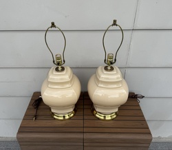 Mid-Century Modern Stiffel Style Cream Ceramic Ginger Jar Table Lamps - Pair