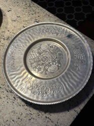Mid-Century Hammered Hand-Wrought Aluminum Floral Platter