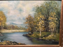 Signed Autumnal River Landscape Oil Painting by Kierkermann