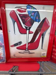 Framed Red High Heels and Martini Art Print by Sherryl Connelly