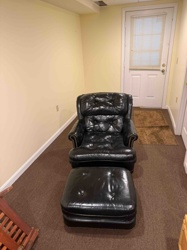 Overstuffed Tufted Leather Armchair and Matching Ottoman