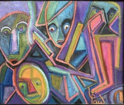 Abstract Expressionist Pastel on Canvas Panel by Paul