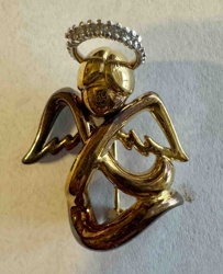 Carla 14k Yellow Gold Angel Brooch with White Gold Accents