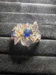 Floral Motif Sterling Silver Multi-Gemstone Ring