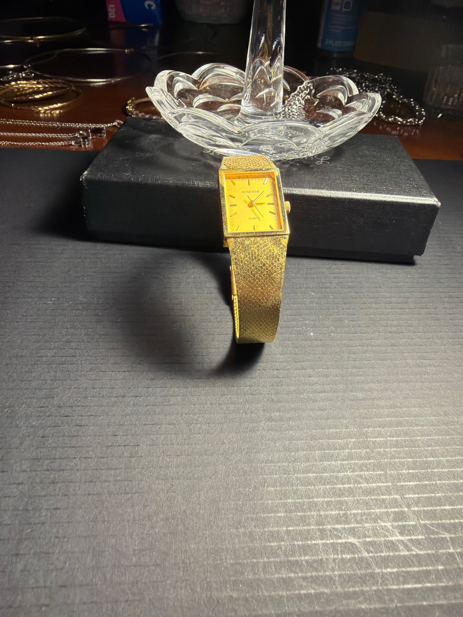 Vintage Gold-Tone Snake Chain Necklace and Crystal Trinket Dish